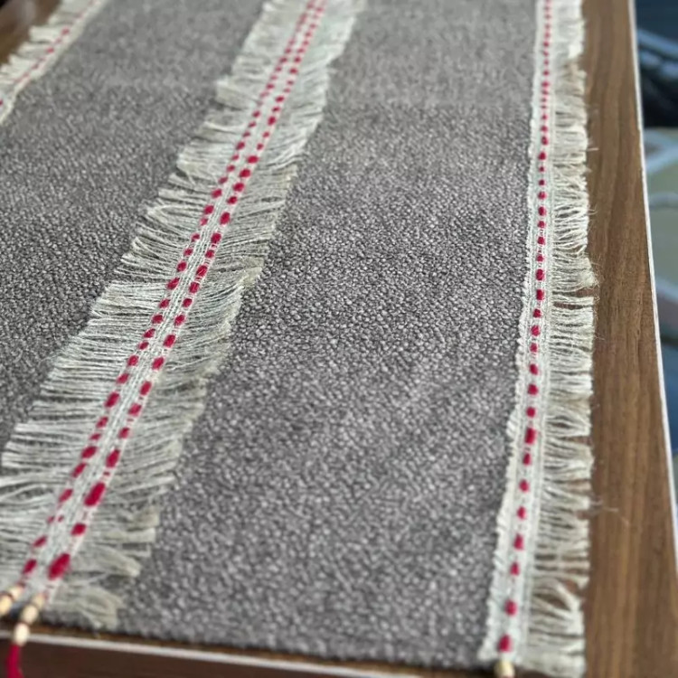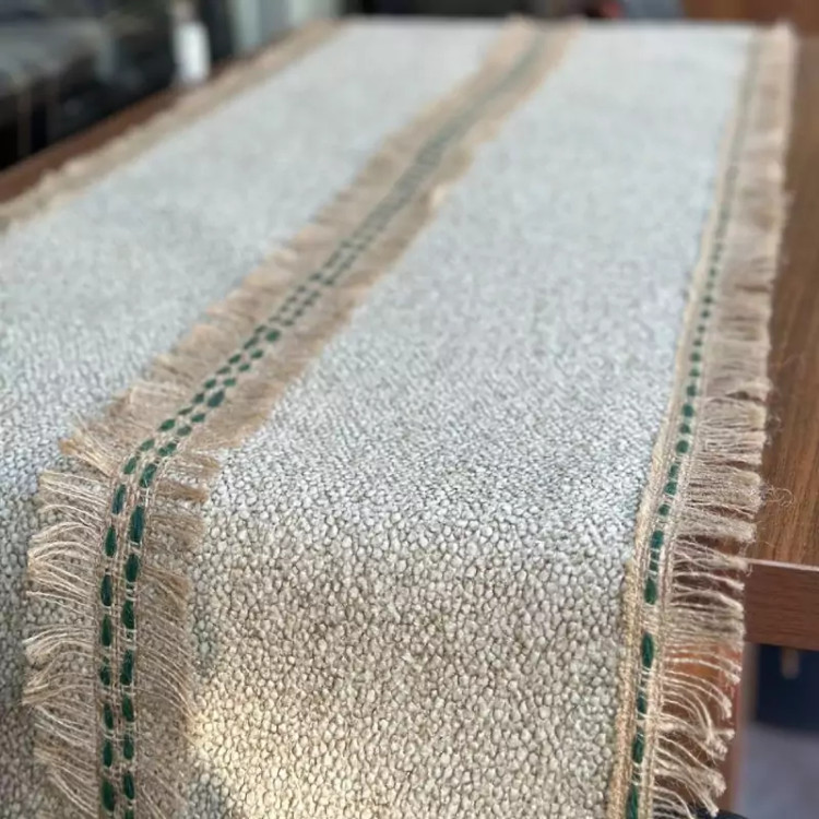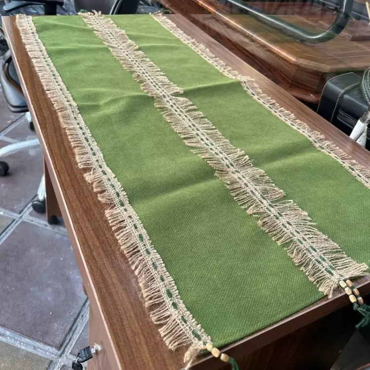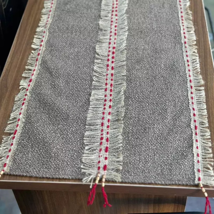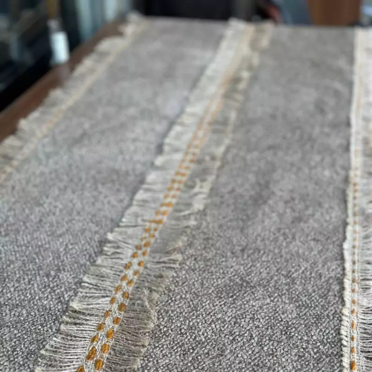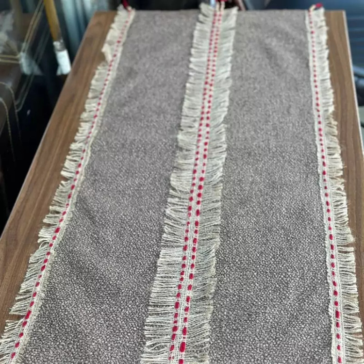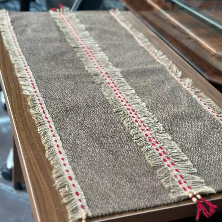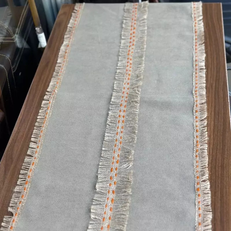 رومیزی مدرن دست بافت توجه داشته باشید کاملا کار دست می باشد پارچه کار لنین درجه A+ است وارداتی نوار گونی کار شده روی کار مناسب برای جلو مبلی و نهار خوری و انواع میز ها...